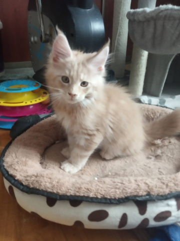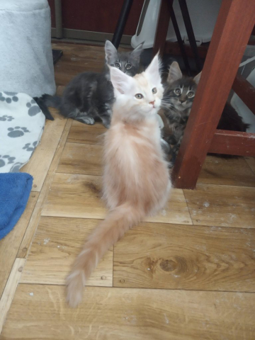 Kolorowy miot V składający się z 4 kociąt: kremowego, rudego, niebieskiego i czarnego klasyka. Miot urodzony 30.10.2025r. Kociaki rosną zdrowo pod opieką naszą i mamy Plejady.